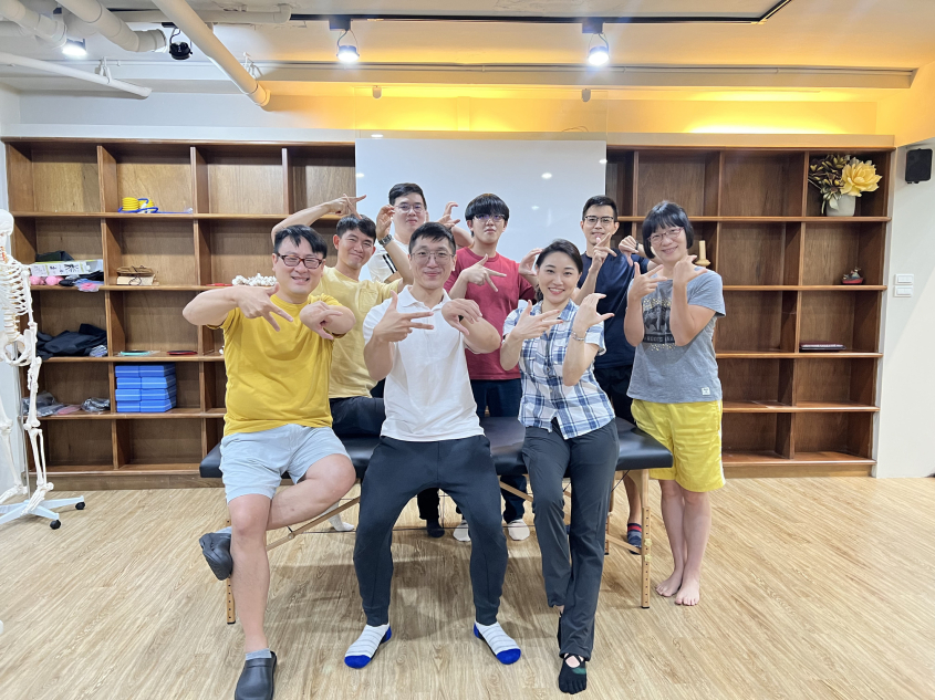 物理治療師 Hunter 在現場也安排了不少互動實作,學員輪流當「示範個案」,由治療師一步步引導,體驗評估與動作調整的過程。